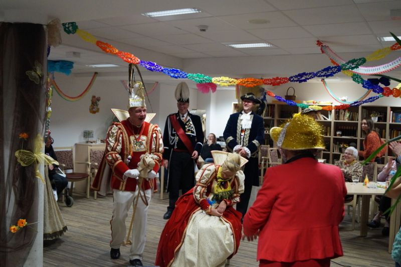 Eine große Ehre der karnevalistischen Festlichkeiten im Seniorenzentrum war der Besuch des Wetzlarer Prinzenpaar Prinz Bernd IV. und Prinzessin Sabine III mit seinem Gefolge am vergangenen Freitag für die Bewohner, Gäste und Mitarbeiter des Seniorenzentrums. Spontan wurde diese zu einem kleinen Märchenspiel eingeladen, welches sie mit musikalischer Unterstützung der Bewohner mit Bravur meisterten.