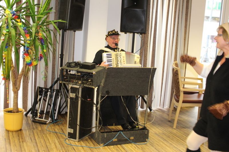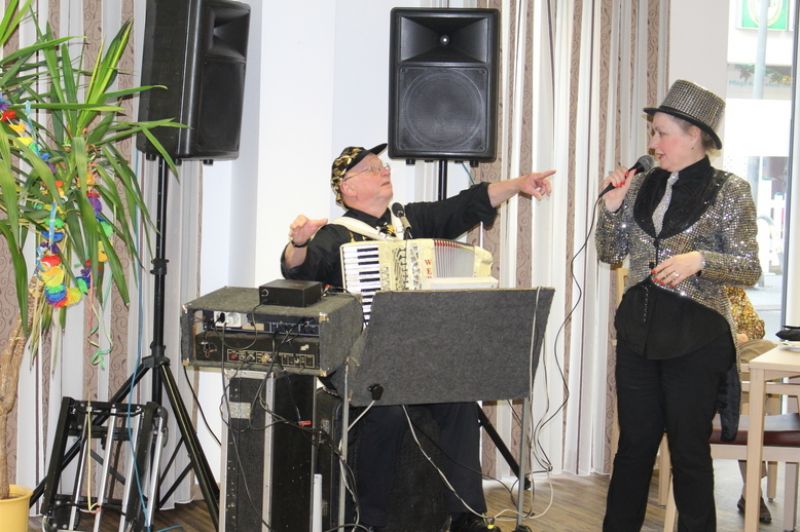 Nach dieser Stärkung wurde das Tanzbein geschwungen, geschunkelt und mitgesungen. Natürlich durfte auch eine stimmungsvolle und lustige Polonaise nicht fehlen. Für die musikalische Unterhaltung sorgte Werner Döpp mit vielen bekannten Faschingsklassikern.